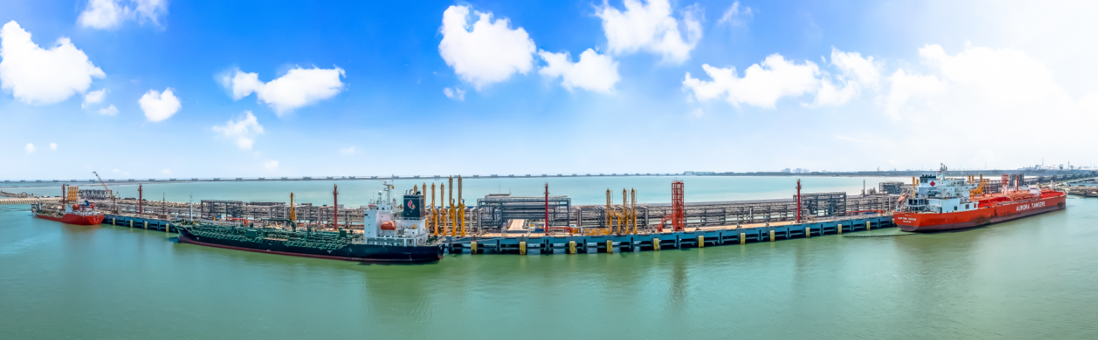 作为盛虹石化产业集团重要物流枢纽,新荣泰码头依托连云港国家级石化产业基地核心区位优势,已建成2个5万吨级液体化工泊位 (水工结构按 10 万吨级设计)和1个1万吨级泊位,构建起年吞吐量540万吨的智慧港口运营体系。通过创新推行“一船两卸”作业模式,码头成功实现乙烯、丙烷、丁烷等多货种联合作业,显著提升港口资源利用效率。