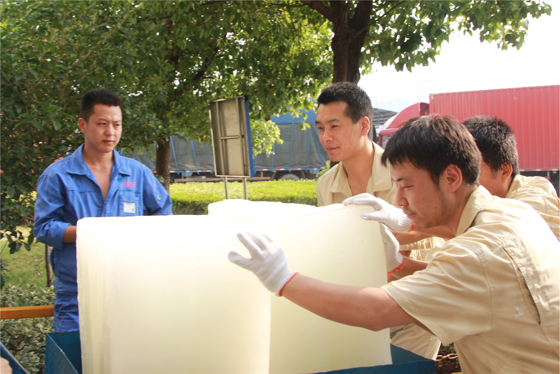 “师傅,来瓶盐汽水解解暑!”新来的员工在现场拿了一瓶盐汽水递给他的师父。为缓解高温带来的负面影响,车间专人负责采购、制作和分发藿香正气水、风油精等防暑药品,以及盐汽水、绿豆汤等清凉物资,确保新鲜、卫生、及时。