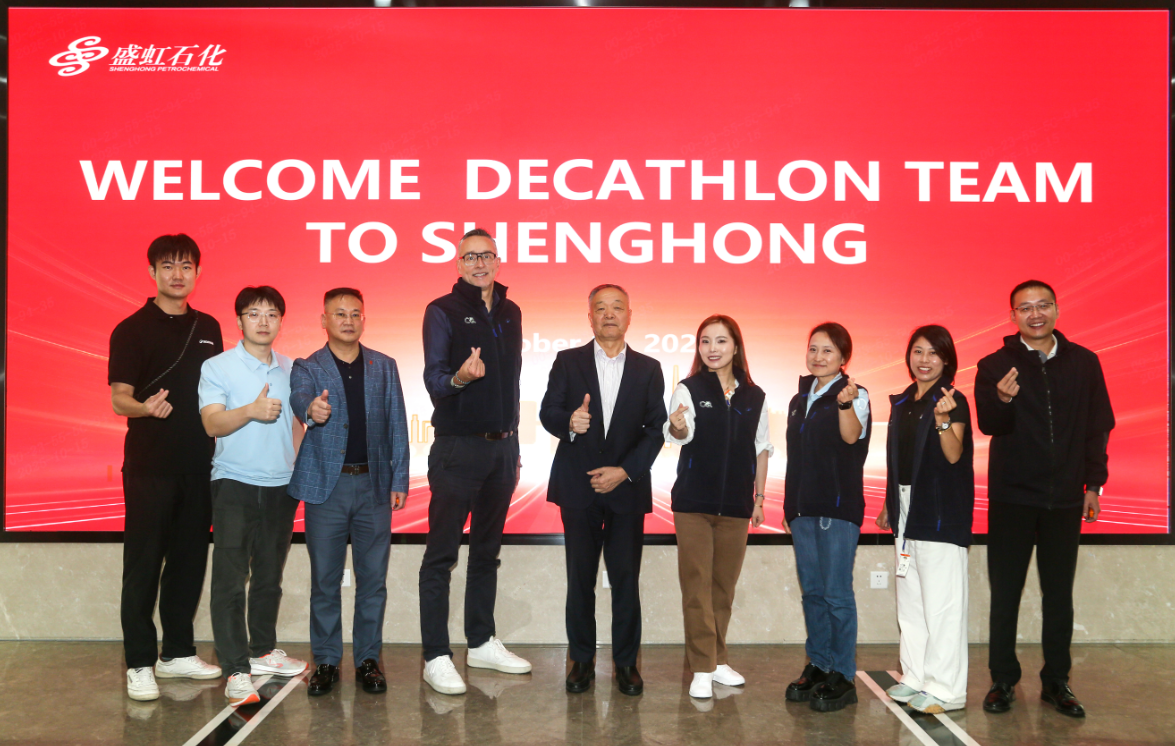 10月15日,国际知名体育用品零售商迪卡侬(Decathlon)高层Matthieu一行,到访盛虹控股集团连云港基地。盛虹控股集团副董事长唐金奎、石化板块总裁白玮、化纤板块副总经理钱敏等领导陪同接待,双方围绕技术创新、产业协同及可持续发展三大核心议题,展开深度对话与交流。