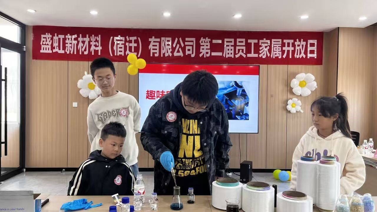 10月26日上午,以“走进盛虹,同心同行”为主题的盛虹新材料(宿迁)有限公司第二届员工家属开放日圆满举行,22个优秀员工及团队代表的家庭受邀参与互动。“化纤课堂”将科普与趣味相结合,孩子们在动手实验中探索纤维世界的奥秘;智能工厂的参观则让家属亲身感受现代化制造的科技魅力;轻松愉快的互动游戏与座谈交流,加深了彼此的理解与信任,凝聚了“家企同心”的融洽氛围。